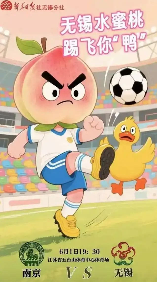 南京和无锡的比赛,变成了盐水鸭VS水蜜桃,“输了水蜜桃加盐,赢了盐水鸭加糖”。