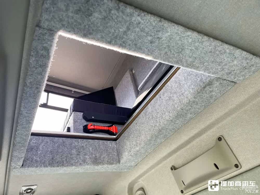 在改装过程中,SBR Specialist Coachbuilders公司对原车的驾驶室顶部进行了切割,使睡眠舱能和原车驾驶室合为一体。睡眠舱通过驾驶室顶端的通舱口进出,得益于低顶驾驶室结构及重卡平台的大尺寸,睡眠舱内部的空间是极为充裕的,比原厂大尺寸驾驶室要宽敞的多。