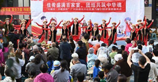 在乌鲁木齐市广兴街街道永兴社区举办的“百家宴”活动